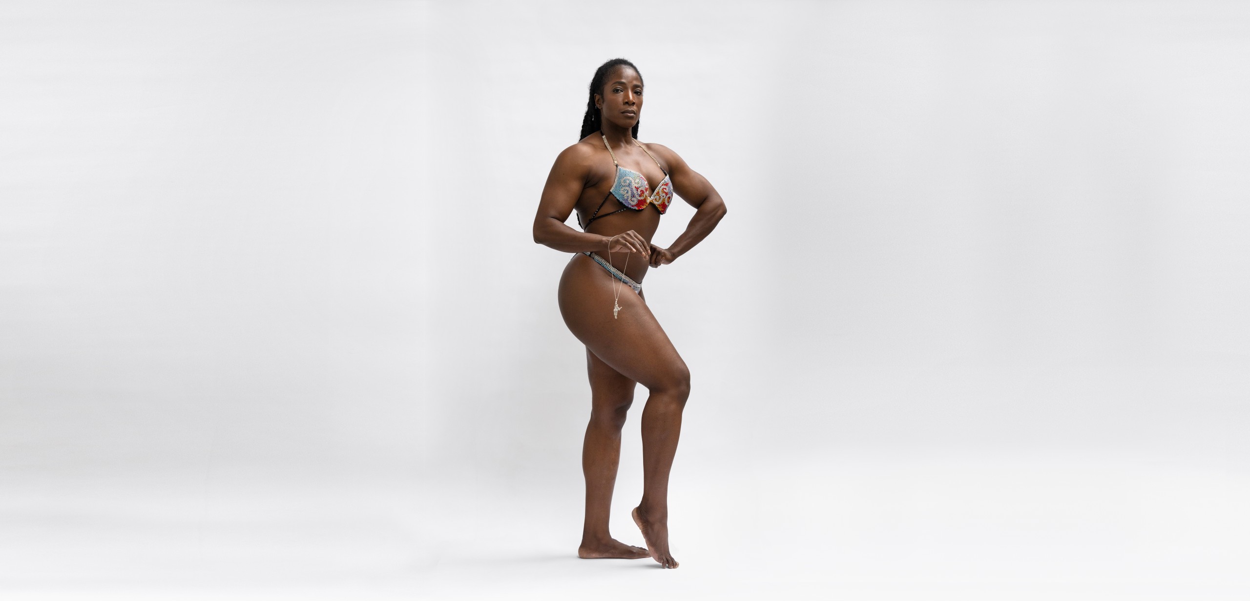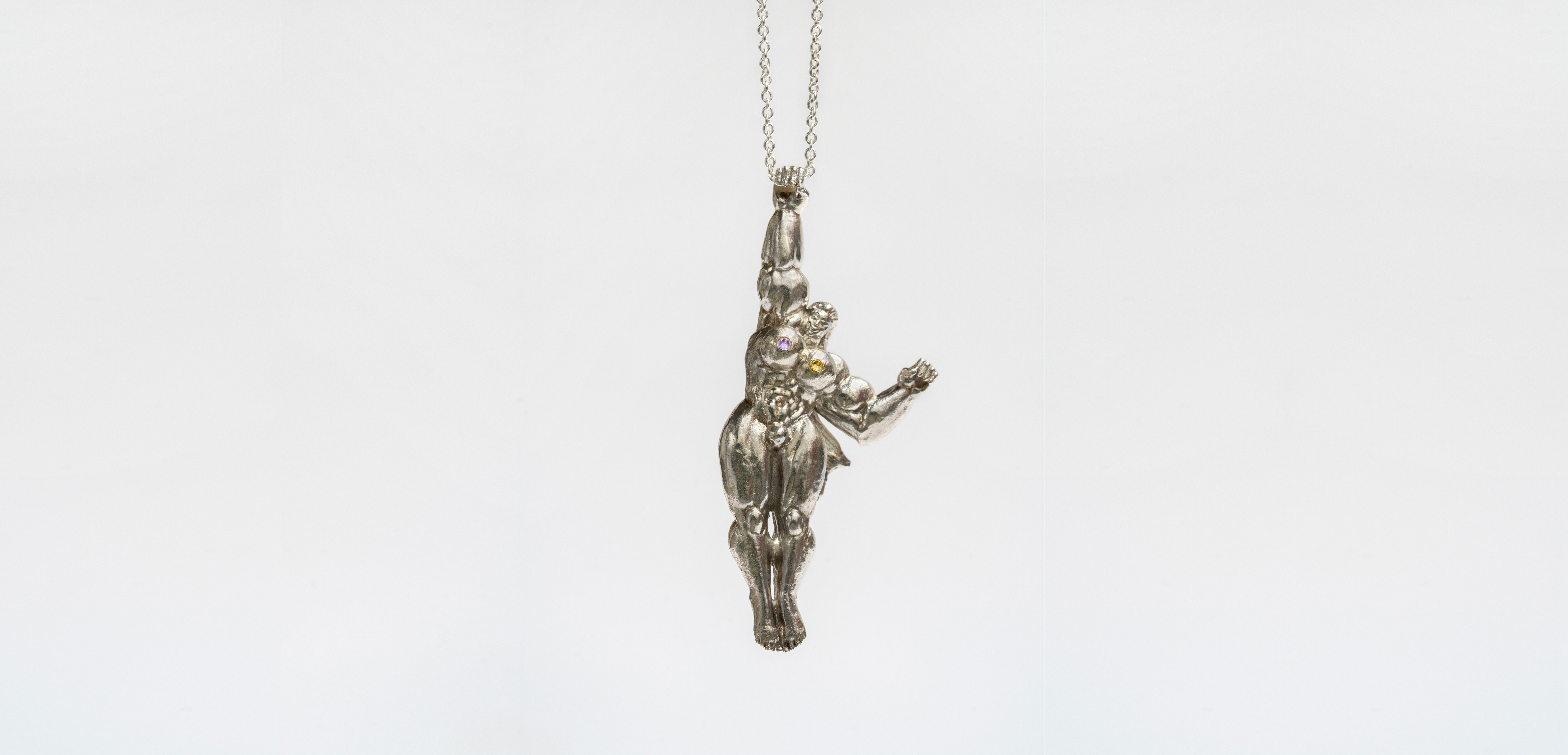 Tjiki Sidibe posing with Miss Universe jewel by Ana Benaroya