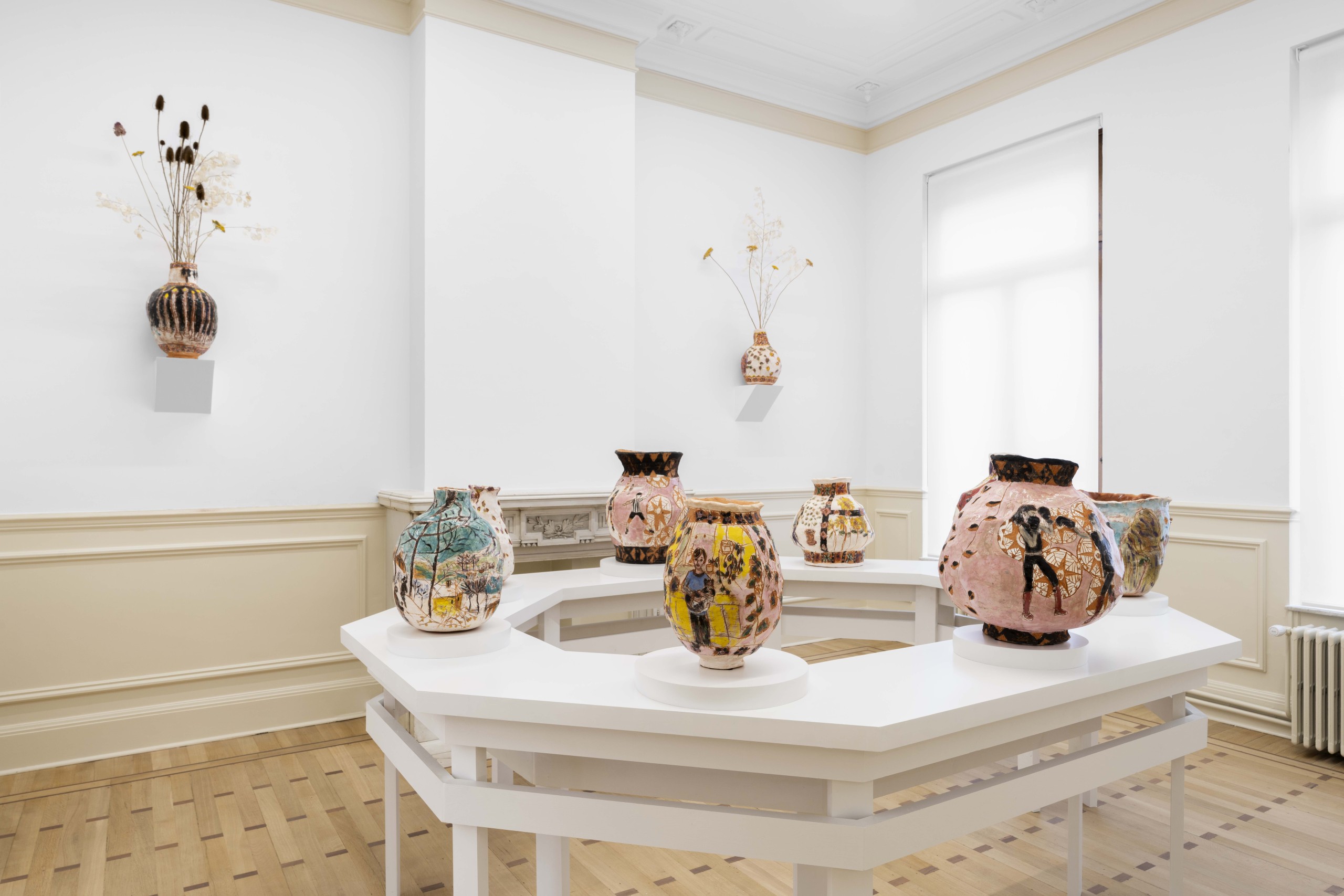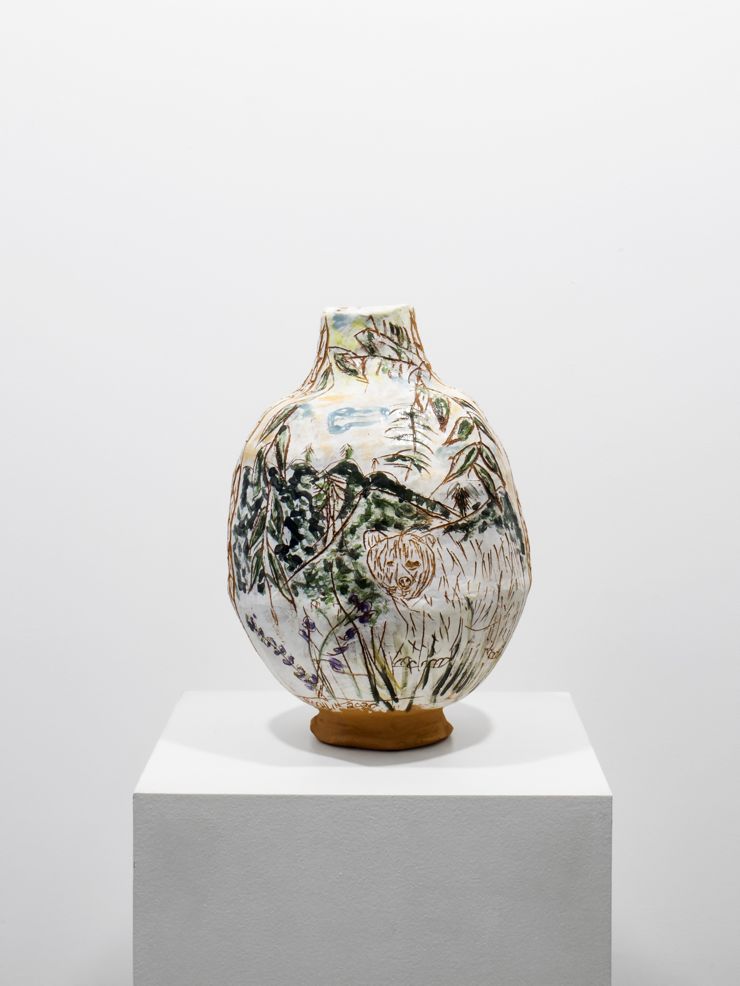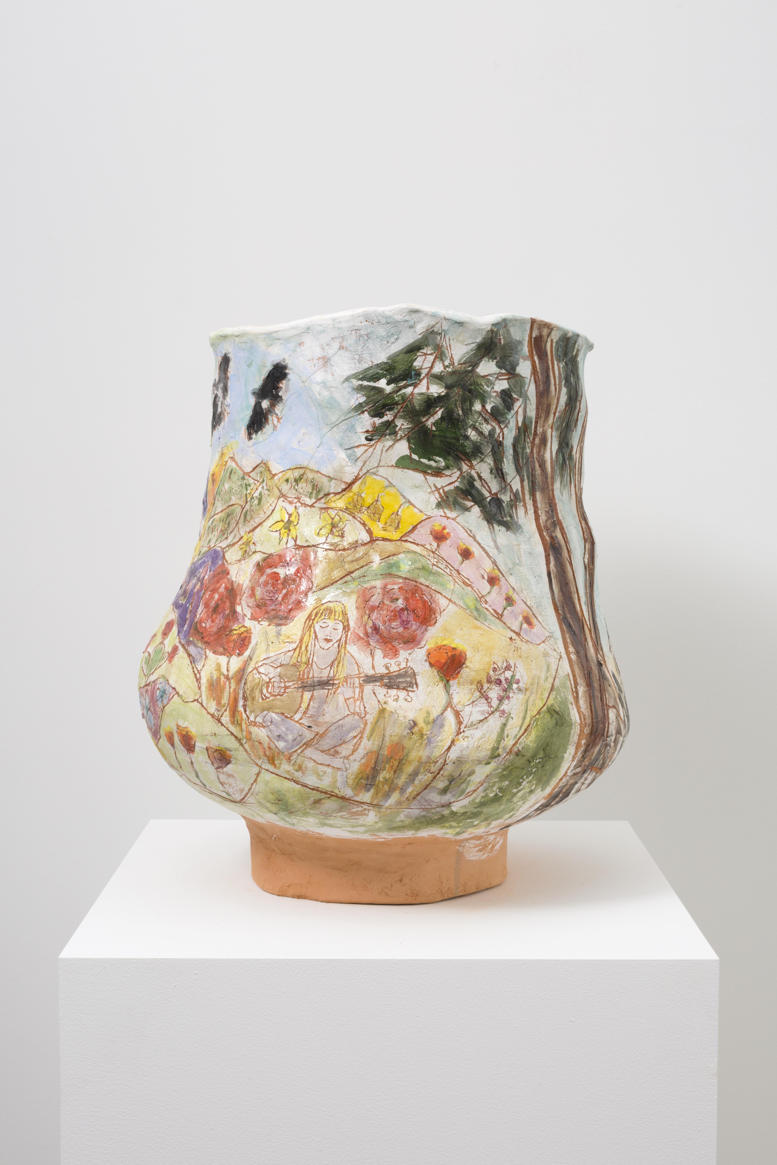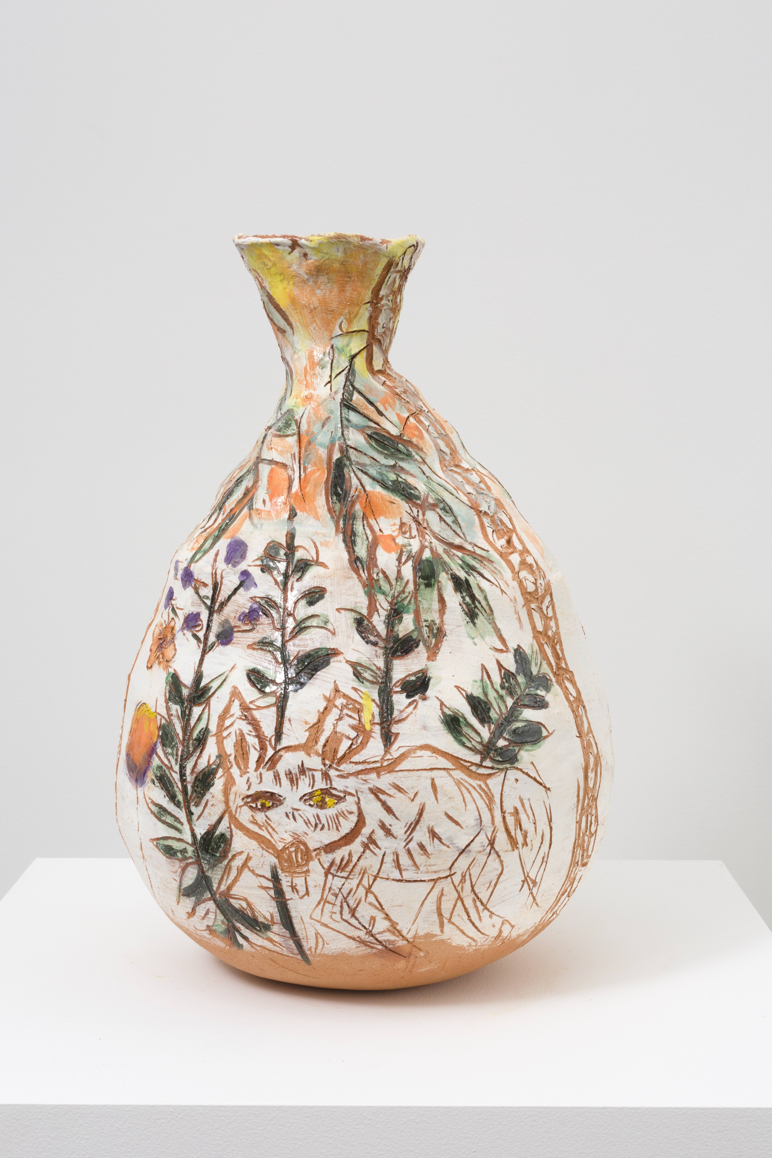 Jennifer Rochlin was born in 1968 in Baltimore, USA. She graduated with an MFA in painting from the Art Institute of Chicago in 1999. Her first encounter with ceramics occurred in 2002, when she was a teacher at Los Angeles High School and was asked to start a ceramics department. Rochlin sculpts unbalanced vessels with asymmetrical curves. She likes to compare the distorting structure of her work to the imperfection of human bodies. Guided by her hands, drawing from the depths of her being, she works with clay to create true narrative receptacles, giving as much importance to the form of these works as to the story they express. As a response to the form, she uses the gesture of painting and the spontaneity of drawing. She engraves, using the technique of Sgraffito, she marks with her prints, bites with her teeth, gestures which come to give rhythm to her work and testify of the spontaneity of the act. Her body of work evokes floating moments, the ardent memory of a love, a starry night in Italy, the landscapes that she cherishes or an afternoon with her boys, three-dimensional story that summoning her personal memories in a passionate vocabulary. What stands out in Rochlin’s work is this strength of intimacy that invites the viewer to feel these moments.