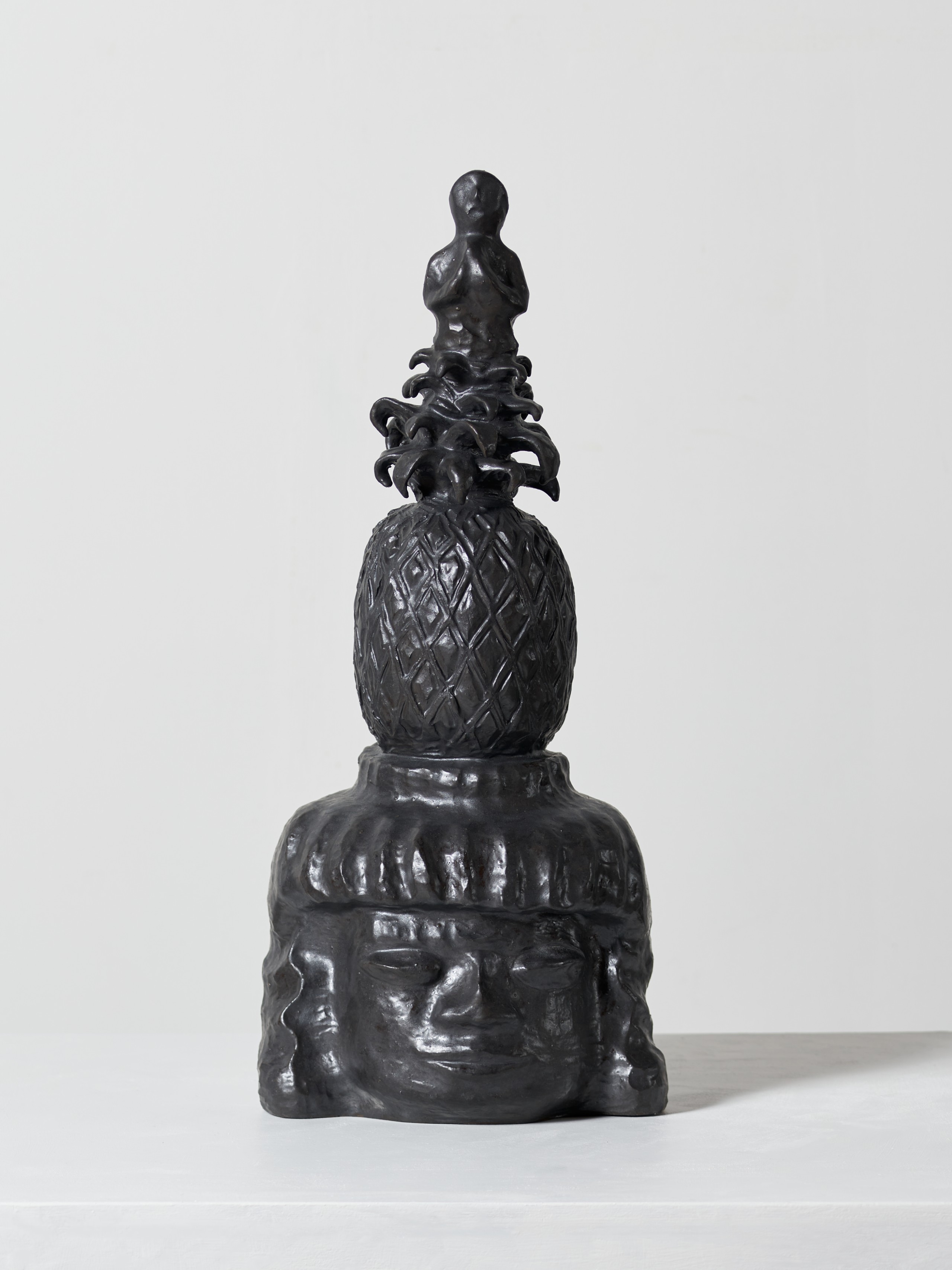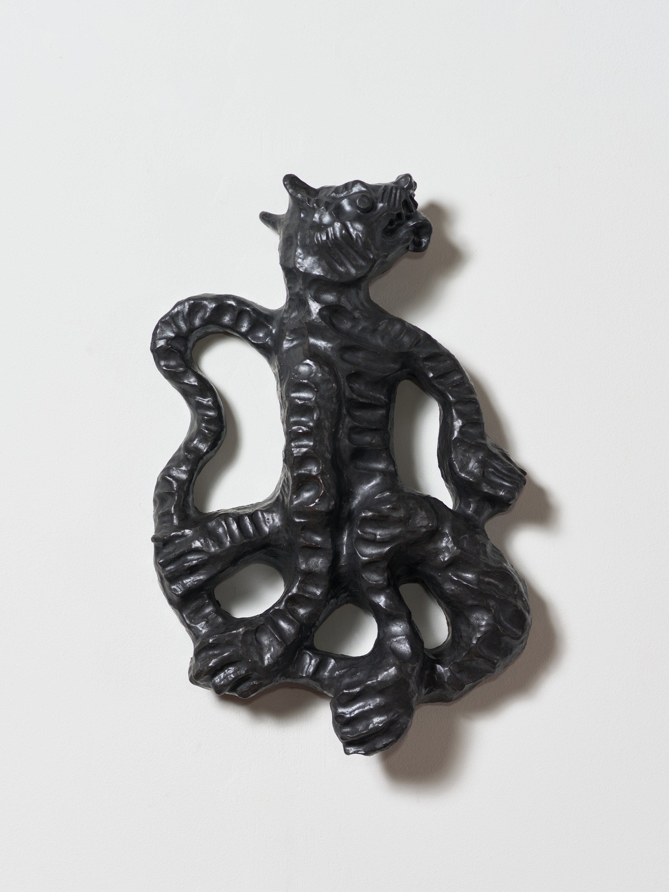 Kazuma Koike is a japanese sculptor and painter. Born in 1980 in Chigasaki, he grew up between Japan, Spain and Argentina. Influenced by this strong uprooting, being a stranger at a young age forged his imagination. Kazuma Koike disorients the observer of his work and makes wonder about the origin and timing of his achievements. In seeking to confuse the essence of his work, he is strongly interested in the falsification or misinterpretation that unintentionally changes the purpose and meaning of things. Black clay and glaze leave no doubt about Koike attachment to traditional Japanese craftsmanship, but the origin of these subjects is more difficult to define: mythology, ancient gods, self-portraiture or internet meme. Koike is interested in hybridization and crossbreeding, a likely legacy of Shinbutsu-Shugo, reconciliation of Buddhism and Shintoism: between acceptance and syncretism. Koike says his interests are “the state where different elements coexist in harmony”.