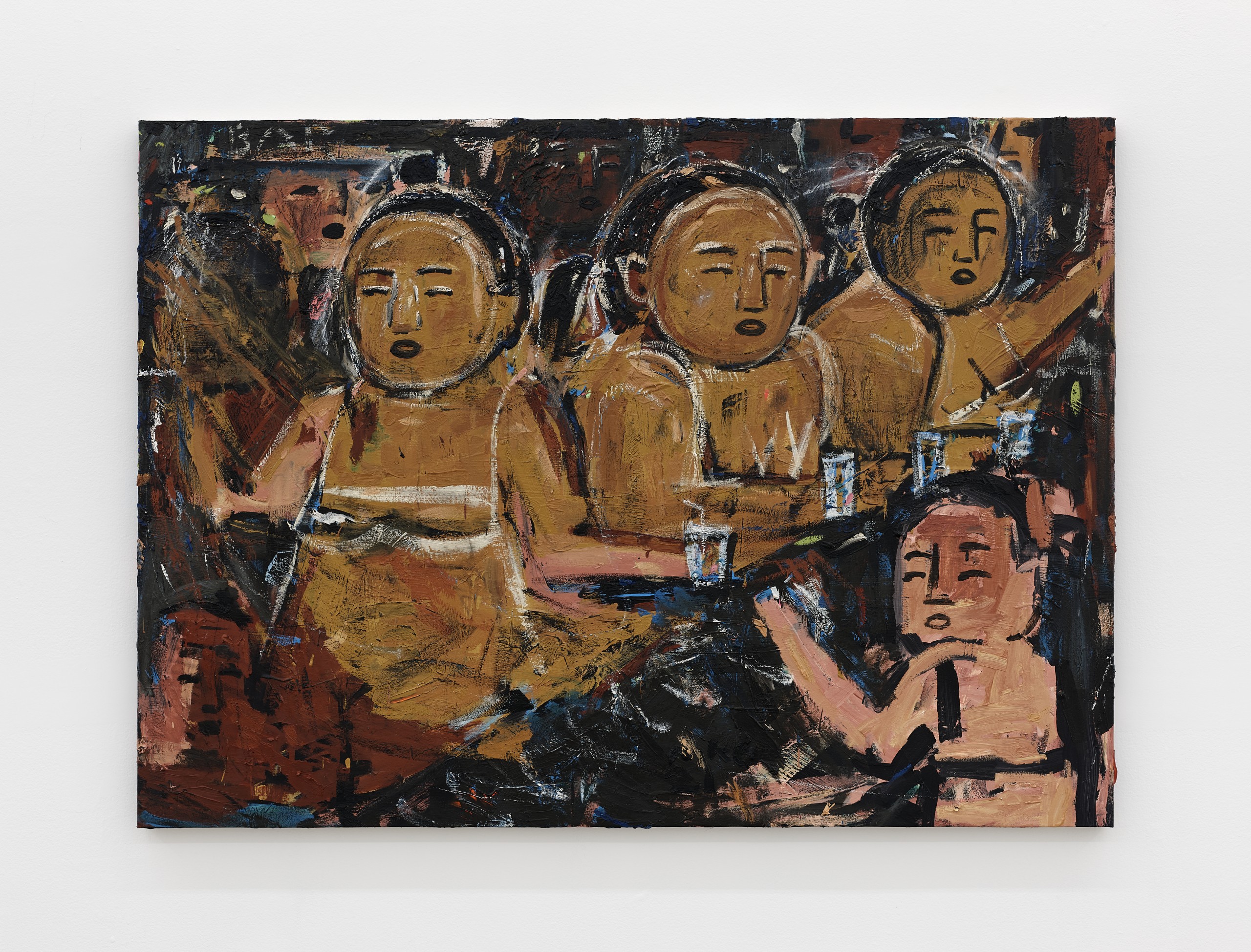 What do you want to drink?, 2020-2021, Oil, oil pastel, acrylic, glitter on canvas, 150 × 200 cm, ©Monica Kim Garza, courtesy of Monica Kim Garza