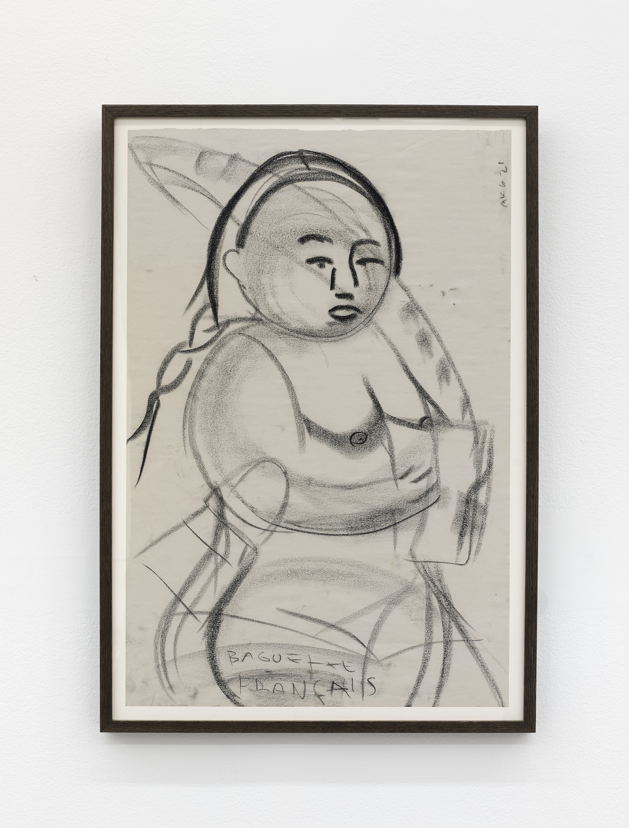 French Baguette study 3, 2021, Charcoal on newsprint, 60 × 91 cm, ©Monica Kim Garza, courtesy of Monica Kim Garza and the Hole