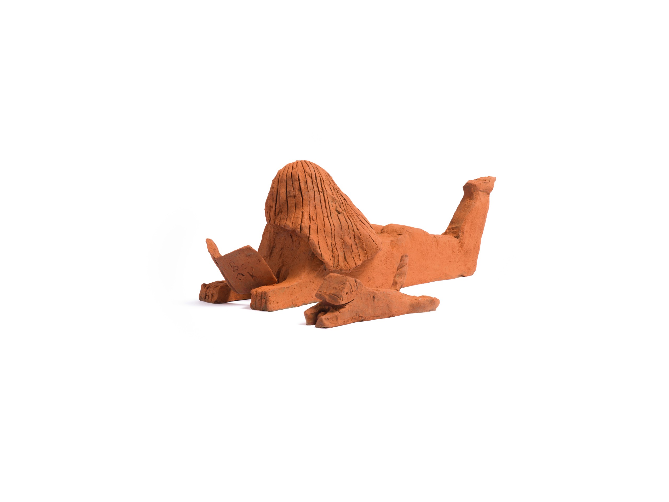 Do you have a dog? Monica does. He’s been showing up here and there for a while now. Curling up against a woman’s chest, sharing a moment between two friends; the dog-human relationship has become a recurrent theme of her work. In a two pieces bronze sculpture, Monica Kim Garza manages to represent the affection and the reciprocity of the two characters, mirroring each other. The figure’s leg in the air playfully alignes with the tail of the dog. She’s losing her focus while he’s busy with his ball. However the two characters are disposed, they are in each other’s company, representing perfectly those “just hanging” moments that are dear to Kim Garza’s artworks.