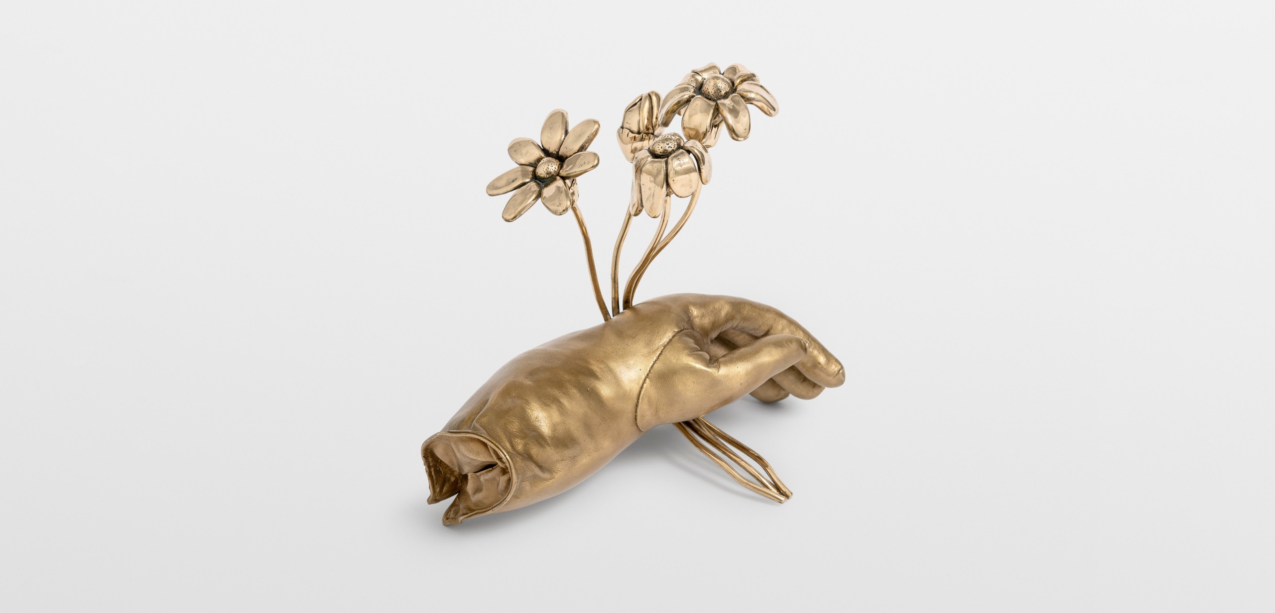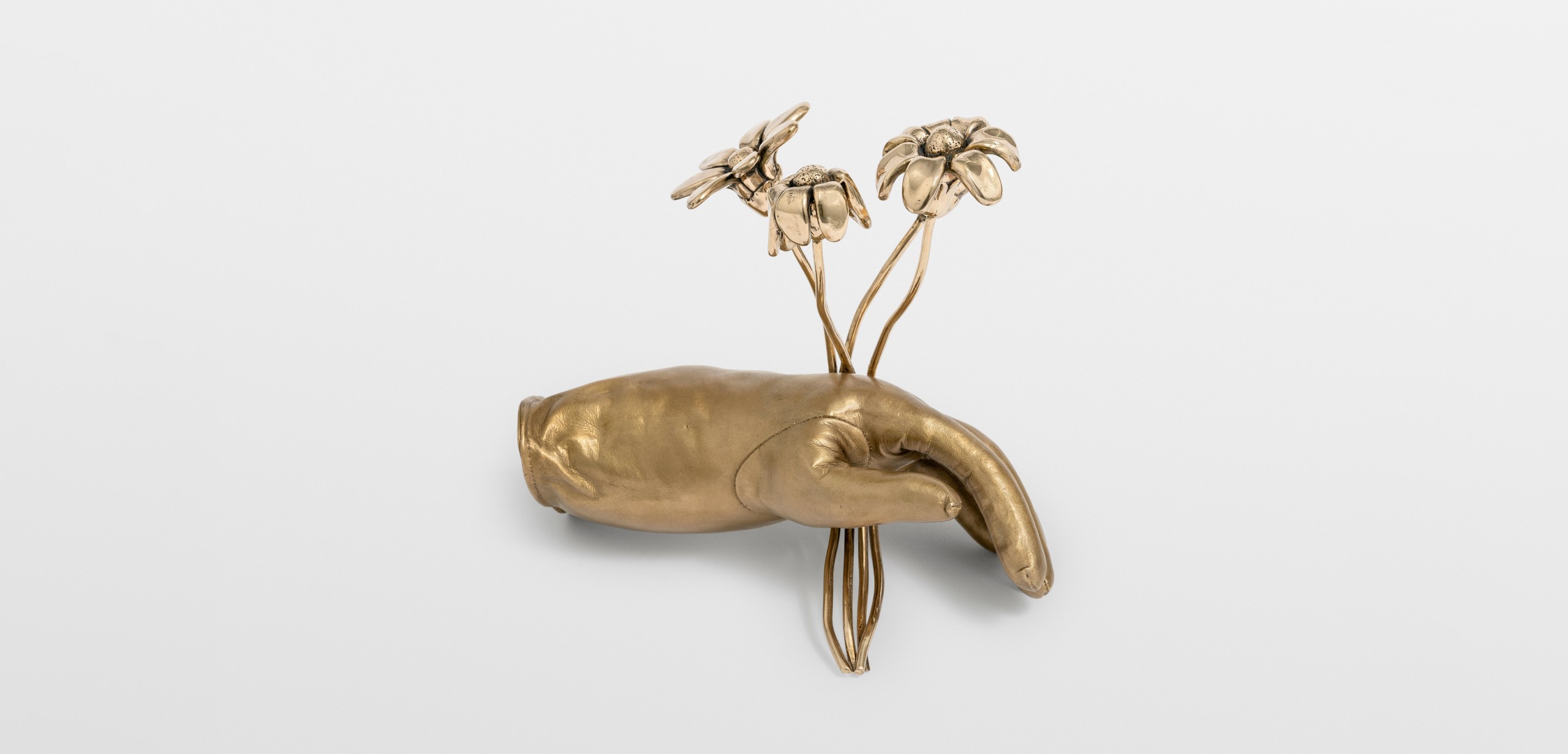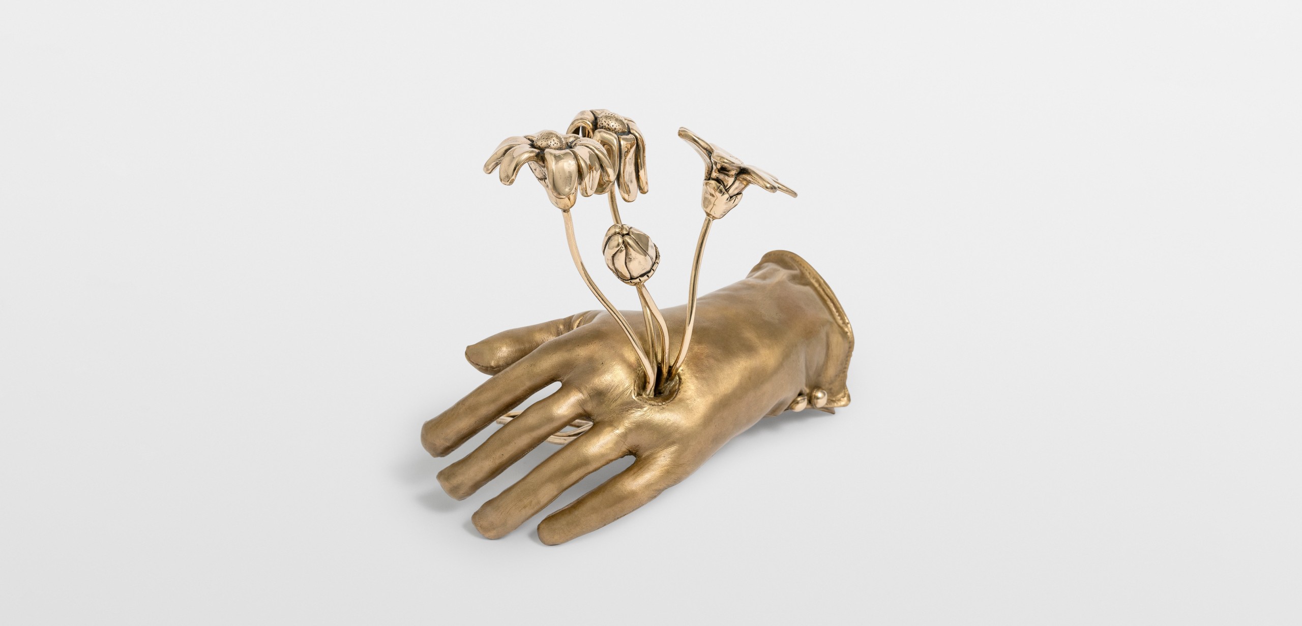 Portal Glove. Rose Nestler delves into the symbolism of stigma, drawn to its deep connections with essential elements such as devotion, belief systems, divine intervention, and power, as well as the striking visual impact it generates. The term “stigma” itself evokes a mark of disgrace imposed by society, creating a captivating duality between symbol and word. This duality has been the subject of Nestler’s extensive research, recurrently integrated into her artistic work. With Portal Glove, Nestler brings this conceptual exploration to life. The artwork features a glove adorned with a stigma on its leather, symbolizing an indelible mark. However, delicate flowers intersect the stigma, creating a subtle tension between disgrace and hope. These flowers represent hope, perseverance, rebirth, and acceptance of human mortality. Thus, Nestler succeeds in conveying a profound reflection on the complex and contradictory aspects of the human condition. Her artwork invites viewers to contemplate how marks of disgrace can be transcended by the power of hope and resilience. Through the juxtaposition of stigma and flowers, Nestler explores the possibilities of transformation and redemption, while emphasizing the inherent beauty and fragility of human existence.