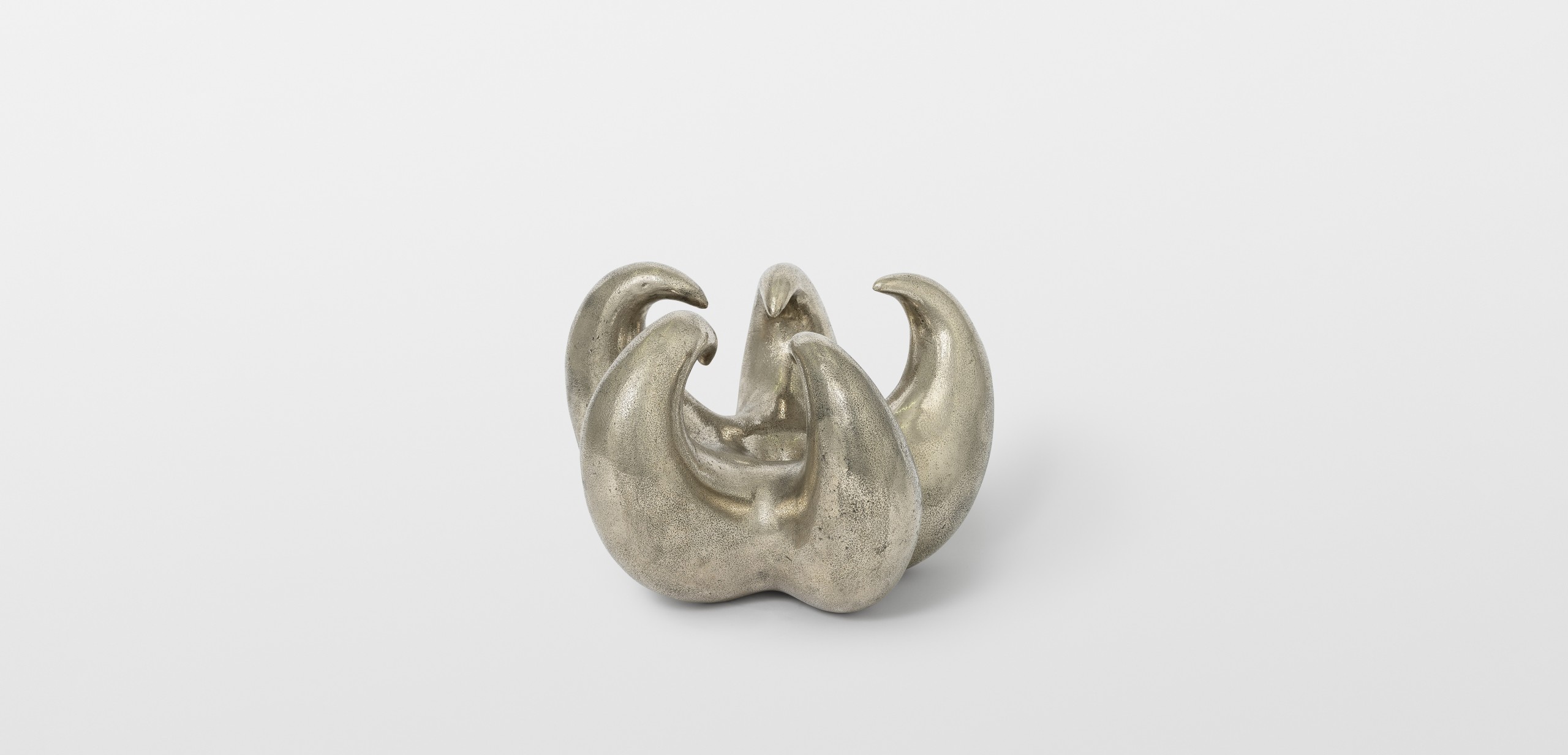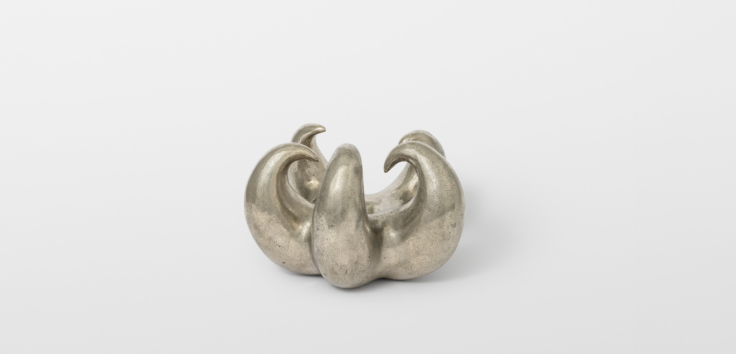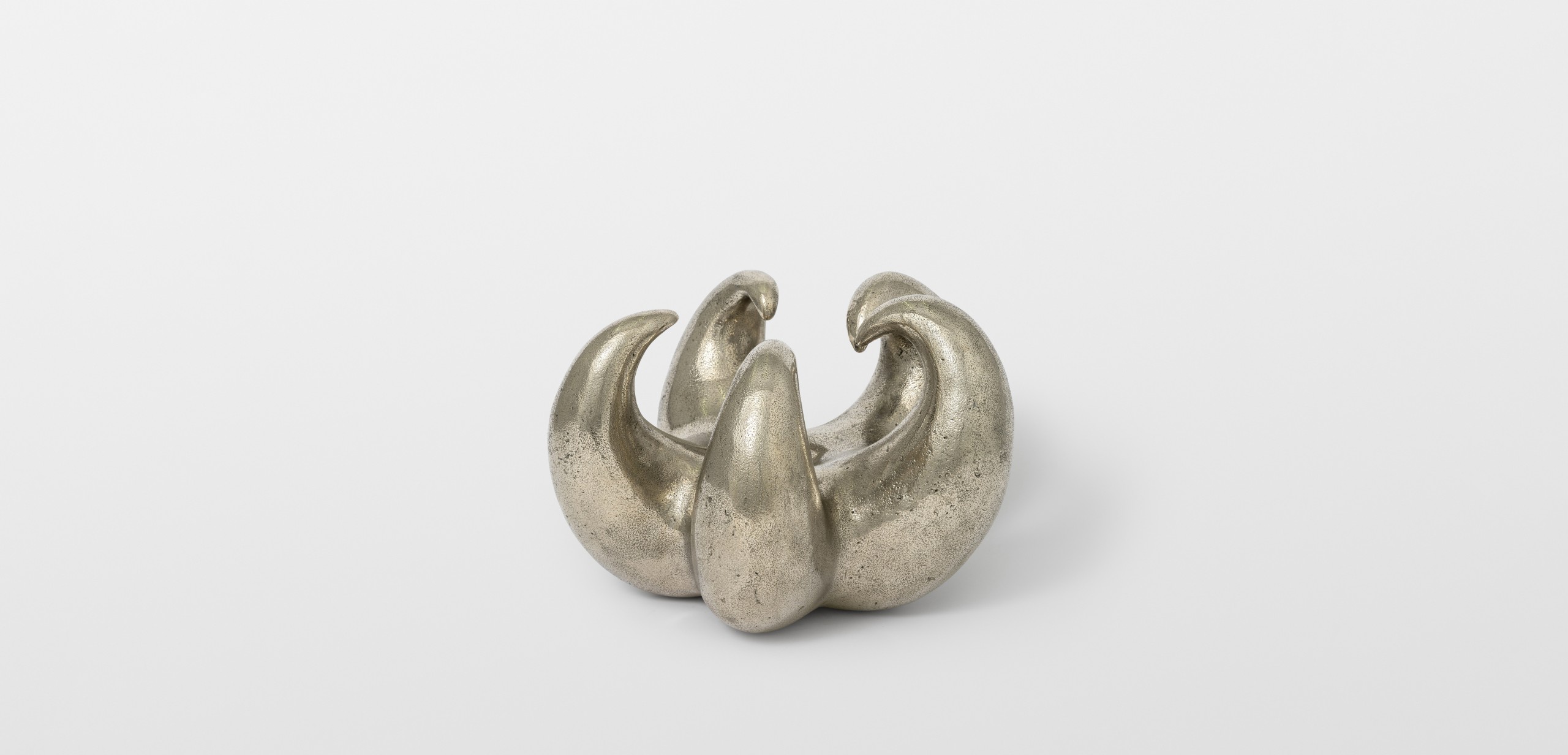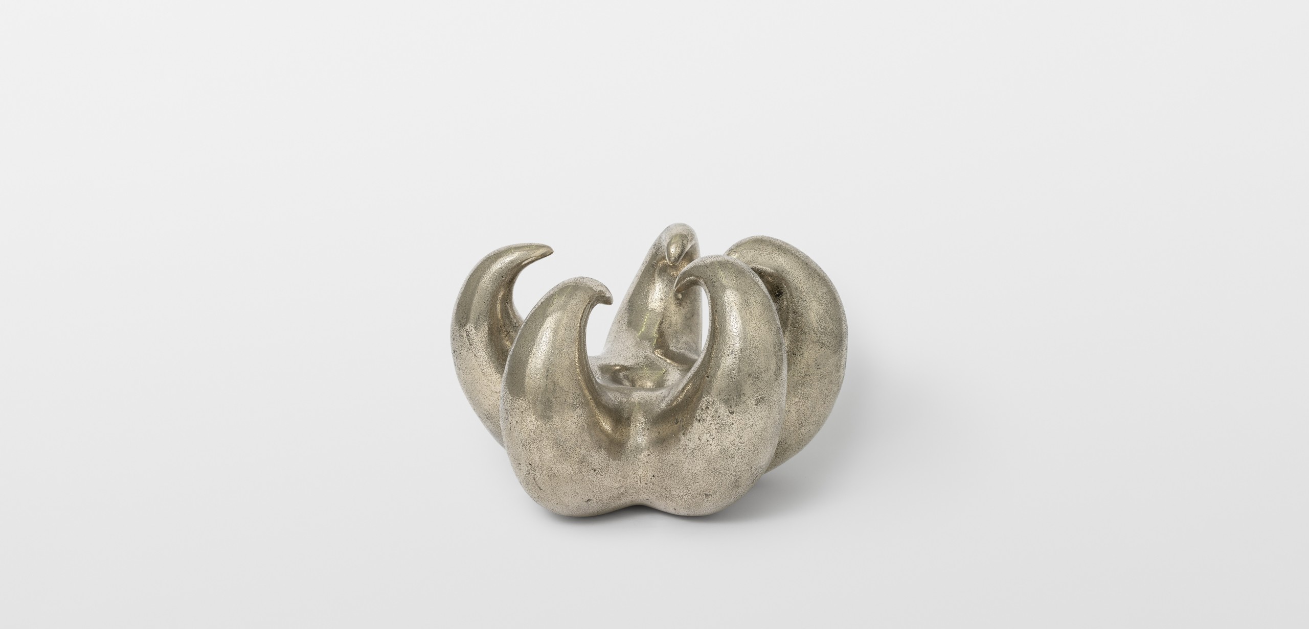 As part of “Heaven Knows, Flower Grows”, Thomas Barger has created a white bronze sculpture depicting a claw. This piece originates from an exhibition titled “Heaven Bound” held at the Shaker Museum. In conceptualizing this sculpture, Barger draws inspiration from the notion of elevation in his work, as well as the urban environment of New York with its towering skyscrapers, evoking the concept of paradise. The sculpture crafted by Barger takes the form of a claw, composed of five sharp points and featuring a central hole. Its dimension is reminiscent of a melon, while its enigmatic shape can evoke both a flower and a crustacean stealthily moving in the depths of the ocean. This artwork embodies Barger’s exploration of contrasts, portraying both a submissive connection and an angry hand clenched in a claw. Through this sculpture, Barger invites us to question notions of opposition and duality, while engaging in a deeper reflection on the contradictory aspects of our existence. His exploration of symbols and forms transports us to a space where emotion, intellect, and spirituality converge.