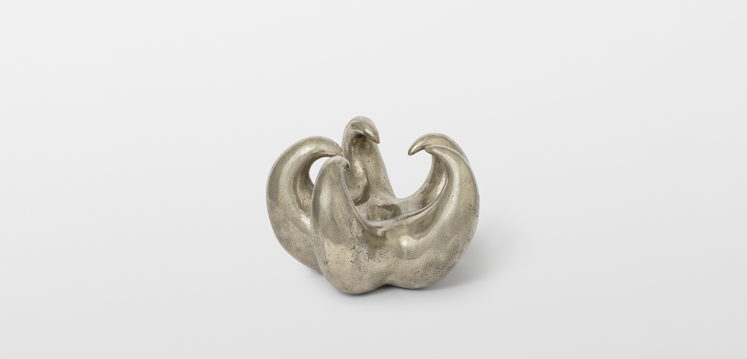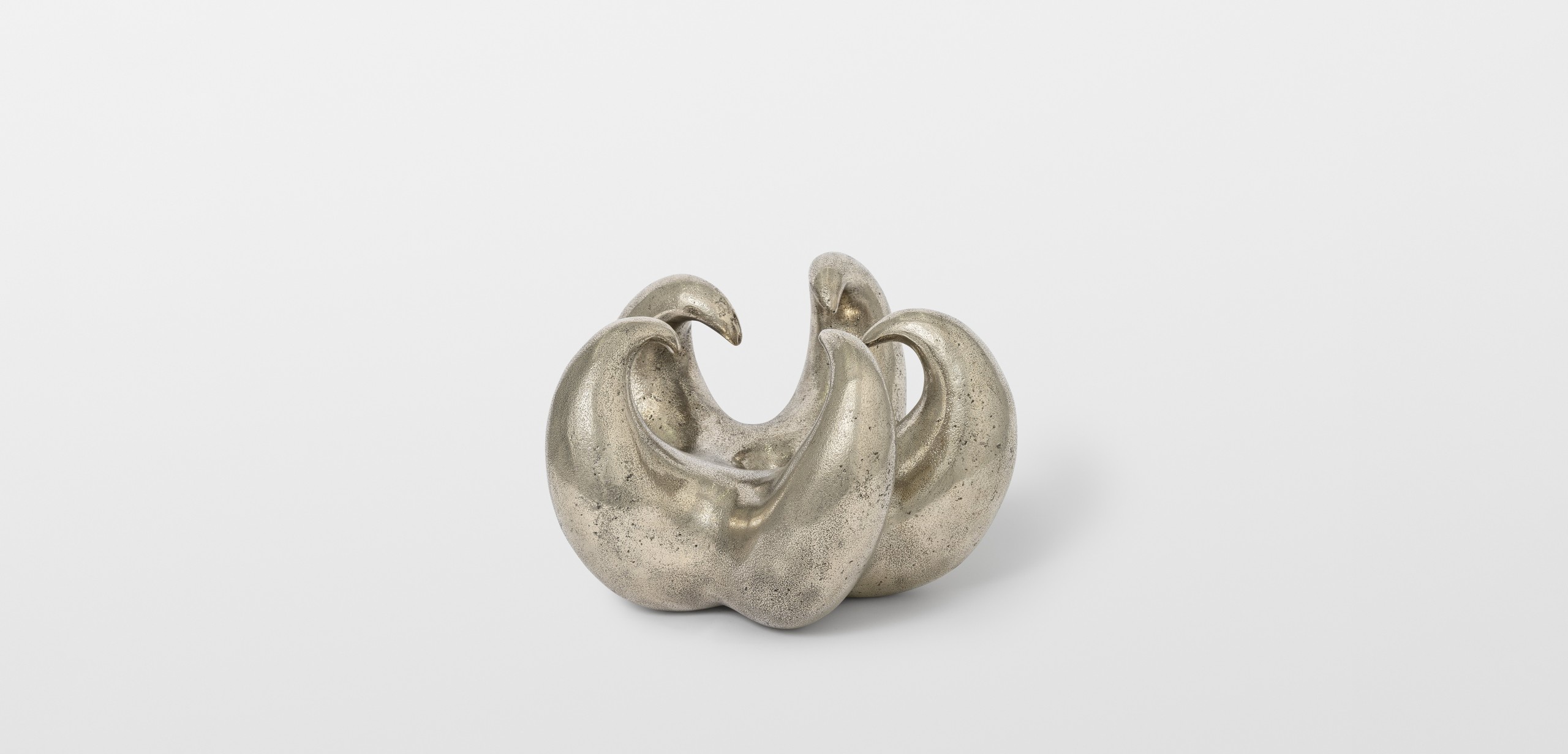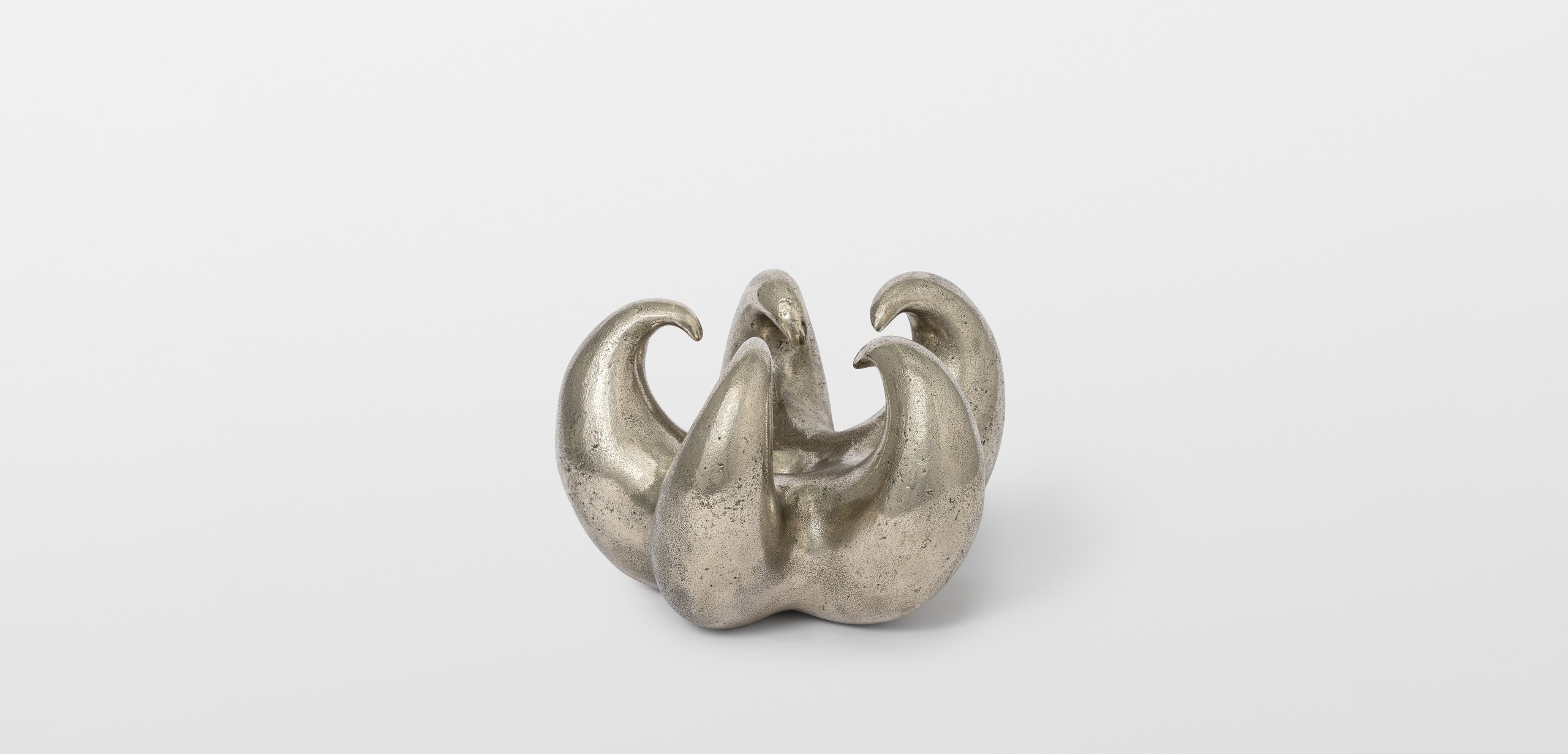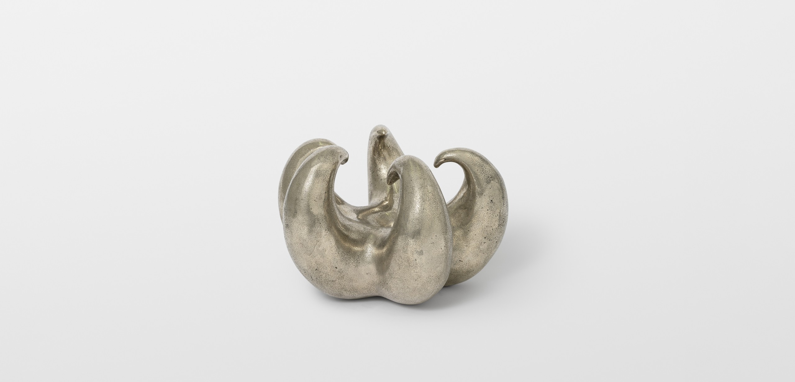 As part of “Heaven Knows, Flower Grows”, Thomas Barger has created a white bronze sculpture depicting a claw. This piece originates from an exhibition titled “Heaven Bound” held at the Shaker Museum. In conceptualizing this sculpture, Barger draws inspiration from the notion of elevation in his work, as well as the urban environment of New York with its towering skyscrapers, evoking the concept of paradise. The sculpture crafted by Barger takes the form of a claw, composed of five sharp points and featuring a central hole. Its dimension is reminiscent of a melon, while its enigmatic shape can evoke both a flower and a crustacean stealthily moving in the depths of the ocean. This artwork embodies Barger’s exploration of contrasts, portraying both a submissive connection and an angry hand clenched in a claw. Through this sculpture, Barger invites us to question notions of opposition and duality, while engaging in a deeper reflection on the contradictory aspects of our existence. His exploration of symbols and forms transports us to a space where emotion, intellect, and spirituality converge.